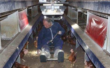 De chicken trolley is een mobiel controlesysteem. Via een wagentje met open cockpit dat is aangesloten op een monorail van 1 km, die in een lus door alle gangen van de pluimveestal rijdt, kan Paul makkelijk de grond- en buitennesteieren rapen. “Het maakte mijn werk in de stal heel wat gezonder en aangenamer”, aldus Paul. “De chicken trolley is een innovatie die ik niet kende, ik had er nog nooit van gehoord”, bekent Ludwig Caluwé. “Paul heeft dat schitterend gedaan. Het bespaart hem niet alleen veel werk, het is ook op ergonomisch vlak een heel goede oplossing. Stel je voor dat ik te voet door de stal had moeten wandelen en zo al die eieren had moeten rapen… Dat was een ander paar mouwen geweest.” Ludwig raapte met de chicken trolley meer dan 50 buitennesteieren in de stal en had daar zo’n 45 minuten voor nodig. Toch ruim een kwartier langer dan dat Paul erover doet ...